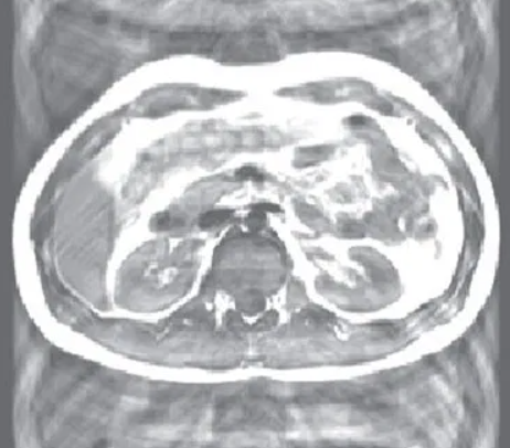 This artifact appears in the form of a ghost, made by respiratory motion in chest wall, abdominal wall and made by heart motion, blood vessels with pulse, swallowing action, and eye movement during data acquisition.